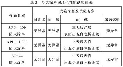 表3 防火涂料的理化性能試驗結果
