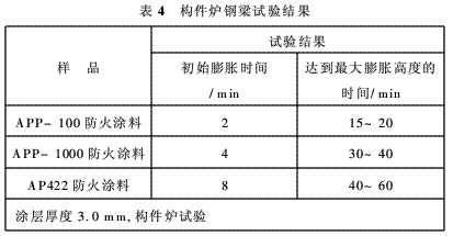2.2APP對防火涂料耐火性能的影響 按照GB14907-2002要求,筆者制作了3個鋼梁樣品,涂料配方(3種APP)參照表1,達到厚度后養護40天,進行耐火性能測試,結果見表1。 三種試樣的耐火極限均可達到1.5h的標準要求。APP-100的耐火極限為118min,APP-1000和AP422的耐火極限均可達到130min。 2.3老化后防火涂料的耐火性能 按照GB14907-2002,對老化試驗后薄型鋼結構防火涂料的樣品進行了耐火試驗,配方1耐堿老化試驗的樣品臨界溫度的衰減≥35%,而其他兩個配方的樣品的試驗結果在標準允許的誤差范圍之內。可見不同聚合度的APP對涂料老化性能的影響十分明顯。