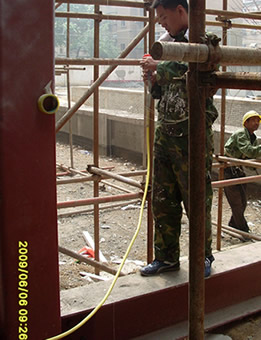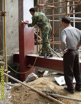 鋼結(jié)構(gòu)防火涂料施工中(上兩圖)